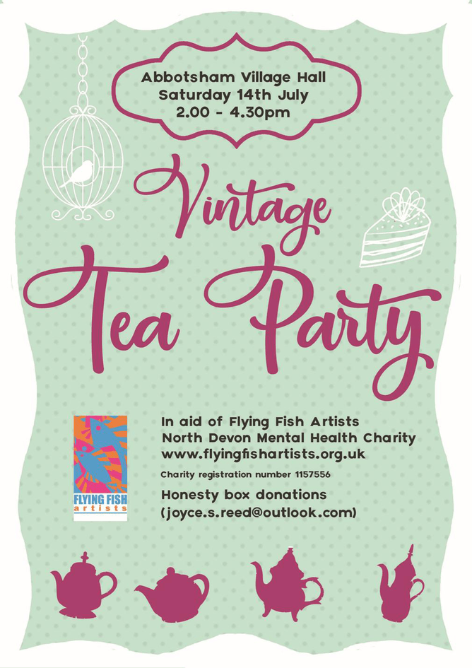 Chamber member Flying Fish Artists are holding a Vintage Tea Party on Saturday 14 July 2018, 2 - 4.30pm at Abbotsham Village Hall.