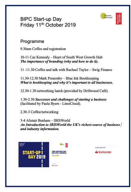 Are you thinking of starting a business? Maybe you're unsure how to take the leap. If so, then the Business & Intellectual Property Centre's Startup Day at Barnstaple Library is where you can find out more, or get the encouragement you need to make a start.